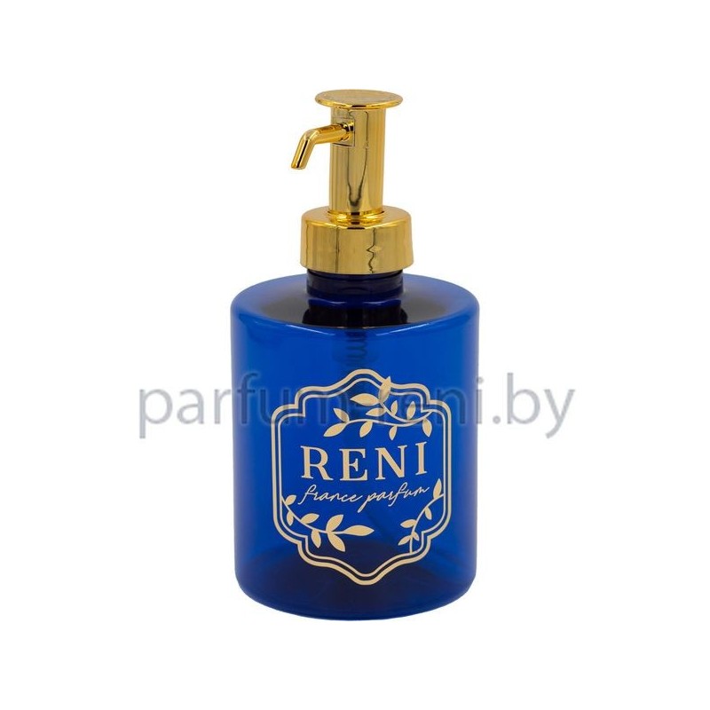 Амфора Reni с золотым дозатором, изготовлена из полупрозрачного синего пластика.